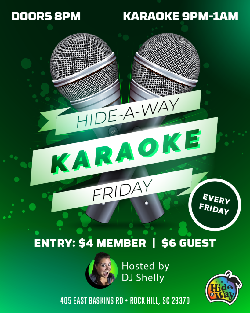 - History: Since 1989, The Hideaway has been a staple in the Rock Hill community, offering a unique and vibrant space for people to come together.